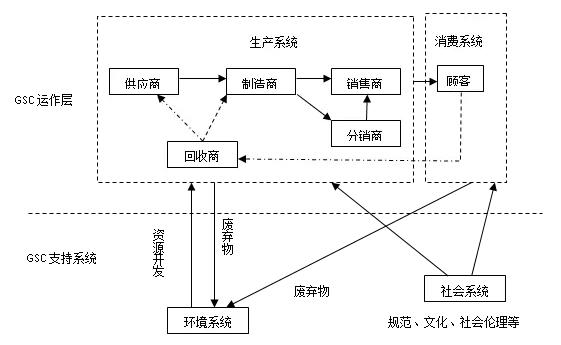 理論界對綠色供應鏈的研究始于20世紀90年代,首次提出綠色供應鏈概念的是美國密歇根州立大學的制造研究協會(MRC),該協會進行一項“環境負責制造(ERM)”研究,于1996年提出綠色供應鏈(Green Supply Chain,GSC)是“以綠色制造理論和供應鏈管理技術為基礎,涉及供應商、生產商、銷售商和消費者,其目的是使產品從物料獲取加工、包裝、運輸、使用到報廢處理的整個過程中,對環境影響最小,資源效率最高”。可見,綠色供應鏈在強調企業自身綠色化的同時,還側重供應鏈節點上企業的協調與合作,考慮產品從設計、采購、生產、營銷、物流、回收全生命周期的節能環保問題。