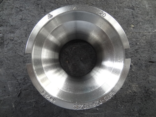 The neckring consists of twoneckring halves and a guide ring. Theguide ring is an internal part and normally forms the top of sealing surface ofthe finish. The neckring forms thefinish and holds the parison during transfer from the blank to the mold. The guide ring is sometimes referred to as aguide plate.