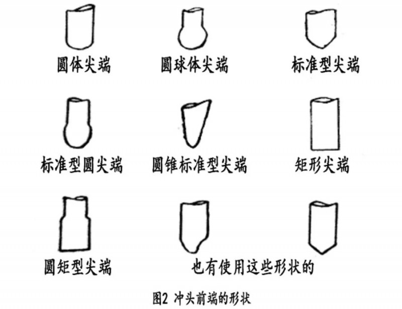 因此,沖頭尺寸前端形狀的選擇是非常重要的,而且其種類很多(圖1),在此說明一些要點: