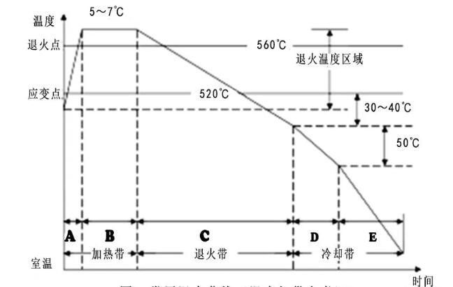 玻璃容器在成型過程中,經過轉變溫度區域(Tf~Tg)時,玻璃由典型的液態轉變成脆性狀態。而在點以下的相當的溫度范圍內玻璃分子仍然能夠進行遷移,可以消除玻璃中結構狀態的不均勻性和熱應力。同時因為玻璃粘度相當大,以致幾乎不發生其外形的改變,這段溫度區域成為玻璃的退火區域。