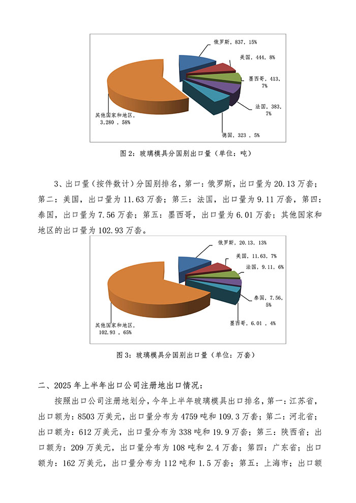 核心提示:2025年1-6月日用玻璃模具出口情況