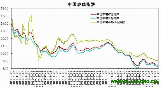全國各地玻璃現貨市場穩中有所回落,華南和華東等地區報價有所下調;華北、華中地區大多采取優惠政策,中旬后逐步取消優惠政策。截止到2月26日,中國玻璃綜合指數為842.87,較1月底下跌14.67;玻璃價格指數為827.65,較1月底下跌17.26;玻璃市場信心指數為903.75,較1月底下跌4.3。