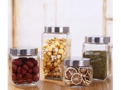 4種規格方形不銹鋼蓋玻璃儲物儲藏罐無鉛透明800ml
